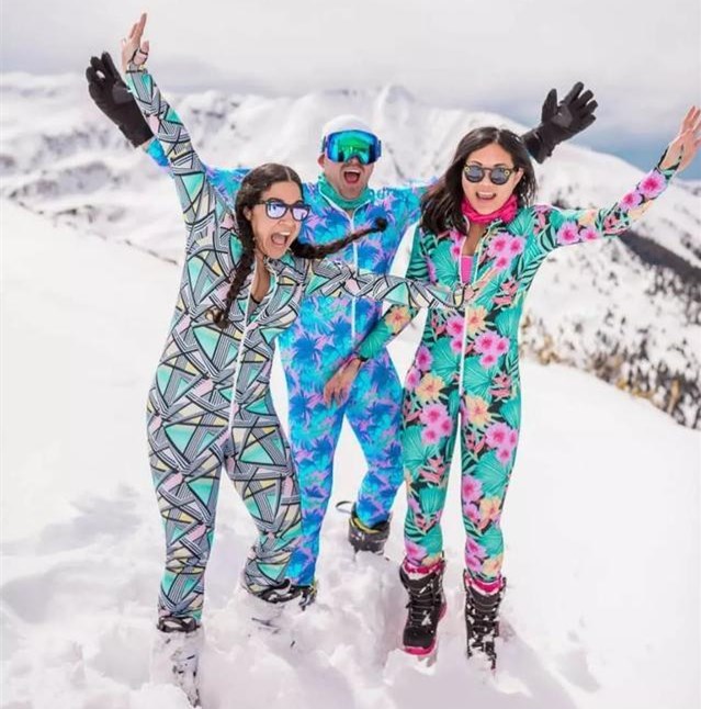這靈感難道來自兒童游泳池的皮球或是奶奶家的花床單?實在想不懂他們在滑雪的時候喜歡穿成五顏六色。話說一開始在滑雪服上運用鮮艷的顏色,是因為在白雪皚皚的世界里,撞色強烈的色彩搭配可以讓滑雪者突出,提升滑雪樂趣。但是也不至于這樣隨意的顏色搭配吧,只能說之前的滑雪服設計審美落后得讓人發指。