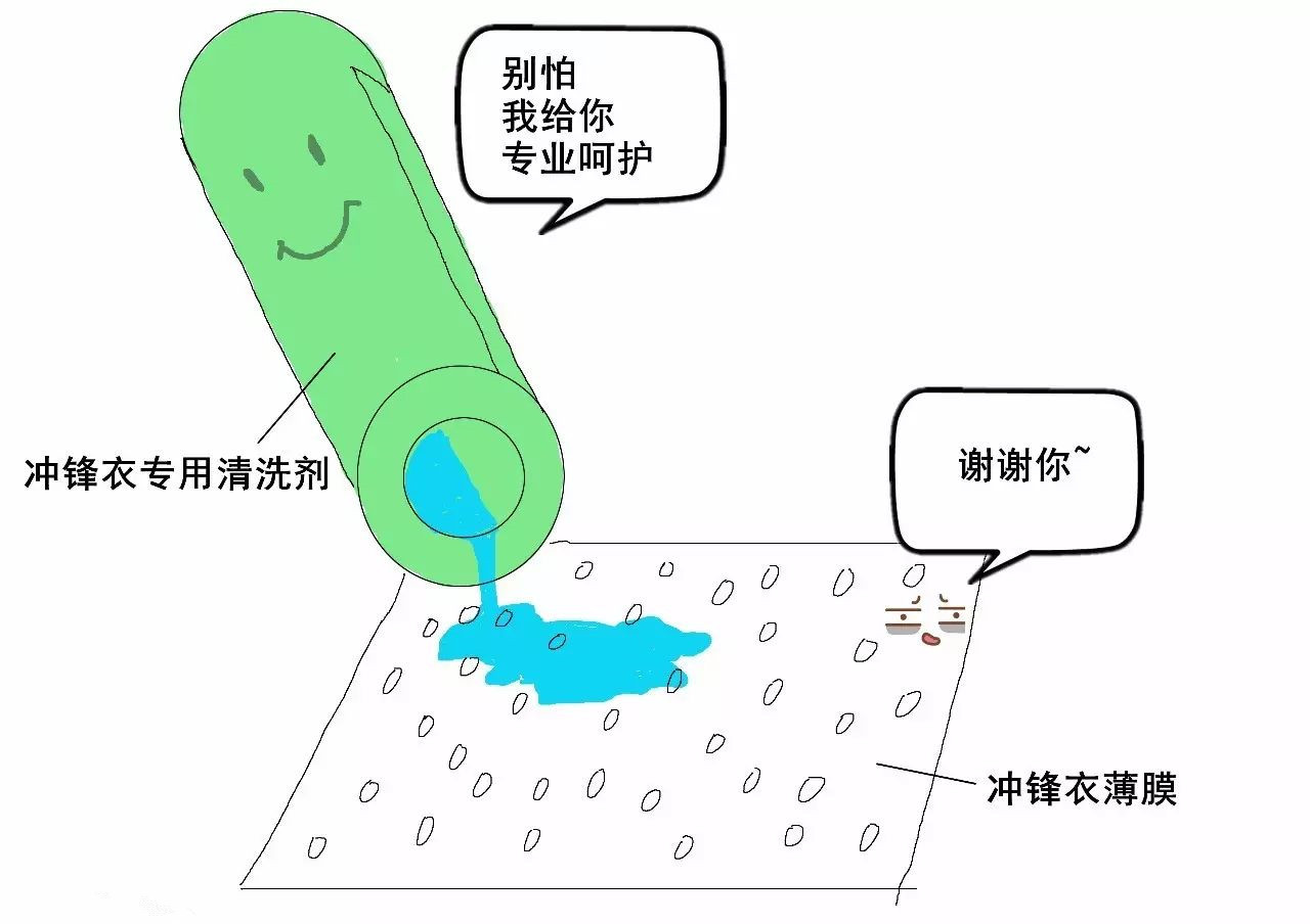 沖鋒衣的清洗,必須采用專門設(shè)計(jì)的清洗液,才不會堵塞薄膜。專門的清洗劑是一種水性溶劑,不會留下殘留物。
