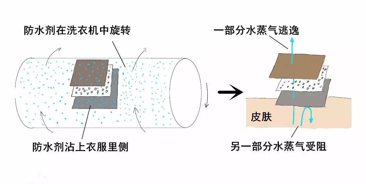 ·     沖鋒衣防水透氣的原理是:薄膜上的小孔雨水進(jìn)不去,水蒸氣能出去,因此可以防水透氣。