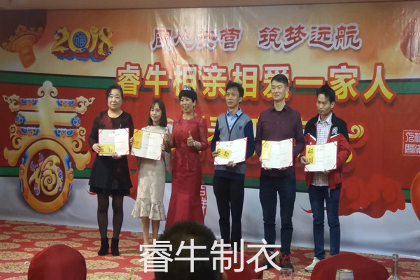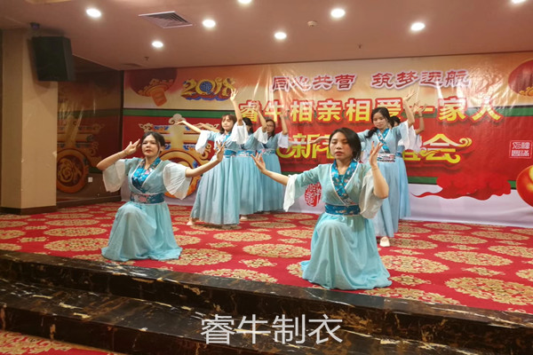 大家都知道沖鋒衣廠家的旺季是在8月到12月,但年底也是制衣生產工廠最忙的時段,在忙的同時我們的年會也是每年必須開展的活動。我們佛山市睿牛制衣廠的年會節目是沒有專人策劃的;從年會的策劃,個人分享到每一個節目都是睿牛每一位家人的共同付出。總經理要求年會節目必須人人參與,人人上臺,不求節目有多么的精彩,重在大家都參與其中。開展年會都是大家所期盼的活動,但讓大家比較郁悶的是,每天工作10多個小時,哪還有時間排練節目,所以節目的排練也是大家最為苦逼的事,我們睿牛人共有的精神必定不允許馬虎行事,每一件事都必須全力以赴,所以大家都利用下班后的那幾十分鐘時間緊湊進行排練,都希望把自己最好的一面展現給大家。現在每天的下班時間各角落都有我們在排練的身影。所以年會既能展開企業歷史回顧、企業未來展望,更能鼓勵團隊士氣、熔煉團隊,展望美好未來而策劃實施的一種集會形式。