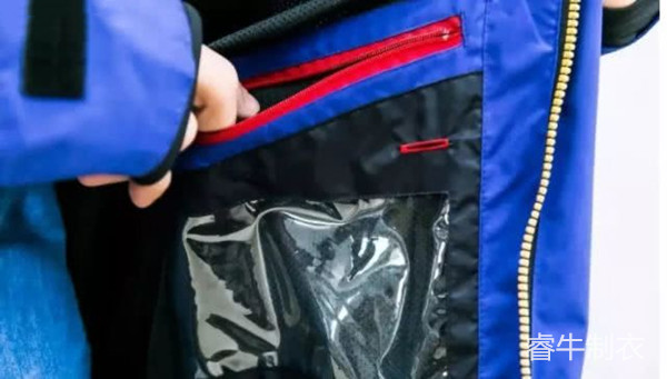 基于沖鋒衣簡(jiǎn)潔的要求,它的兜袋一般很少。對(duì)于滑雪服來(lái)說(shuō)就不同了,為了讓滑雪者收存更多東西,比如滑雪鏡、手套、手機(jī)之類的個(gè)人用品,滑雪服安排的兜袋很多,而且開口也很大,因?yàn)榛┱咝枰獛е痔兹》盼锲贰i_口處一般使用拉鏈密封,防止在劇烈運(yùn)動(dòng)時(shí)物品的丟失,需要特別注意的是:滑雪服的小口袋很多,材料柔軟的是為了存放手機(jī)和滑雪鏡,質(zhì)地透明的是用來(lái)存放滑雪時(shí)間卡,這些細(xì)節(jié)都是服裝設(shè)計(jì)人員充分考慮到使用者的實(shí)際需求后所設(shè)計(jì)的。