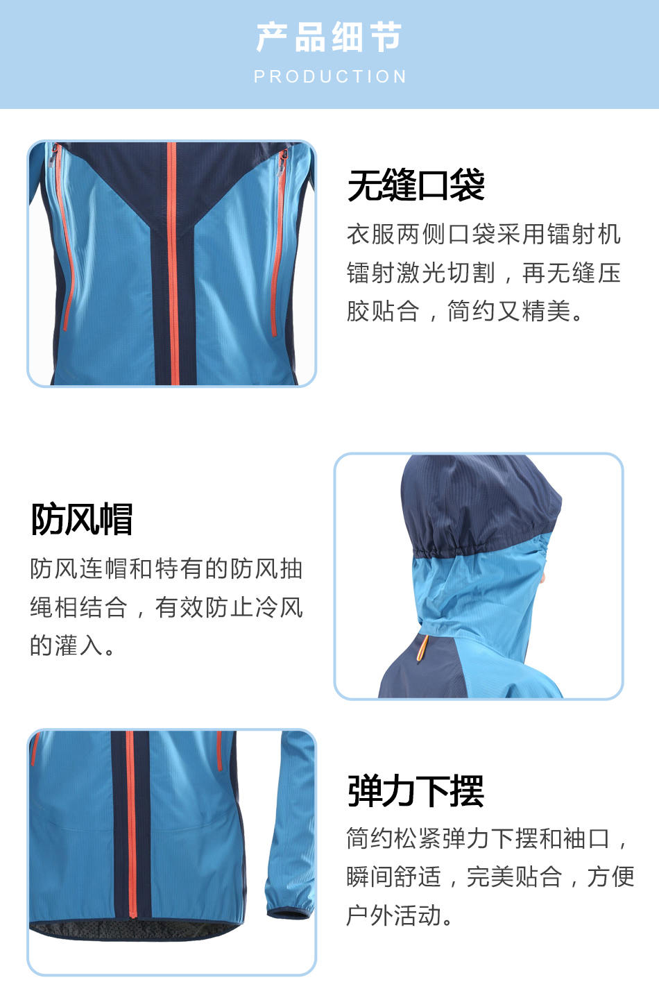 防風帽:單層壓膠沖鋒衣的防風連帽和特有的防風抽繩相結合,有效防止冷風的灌入。